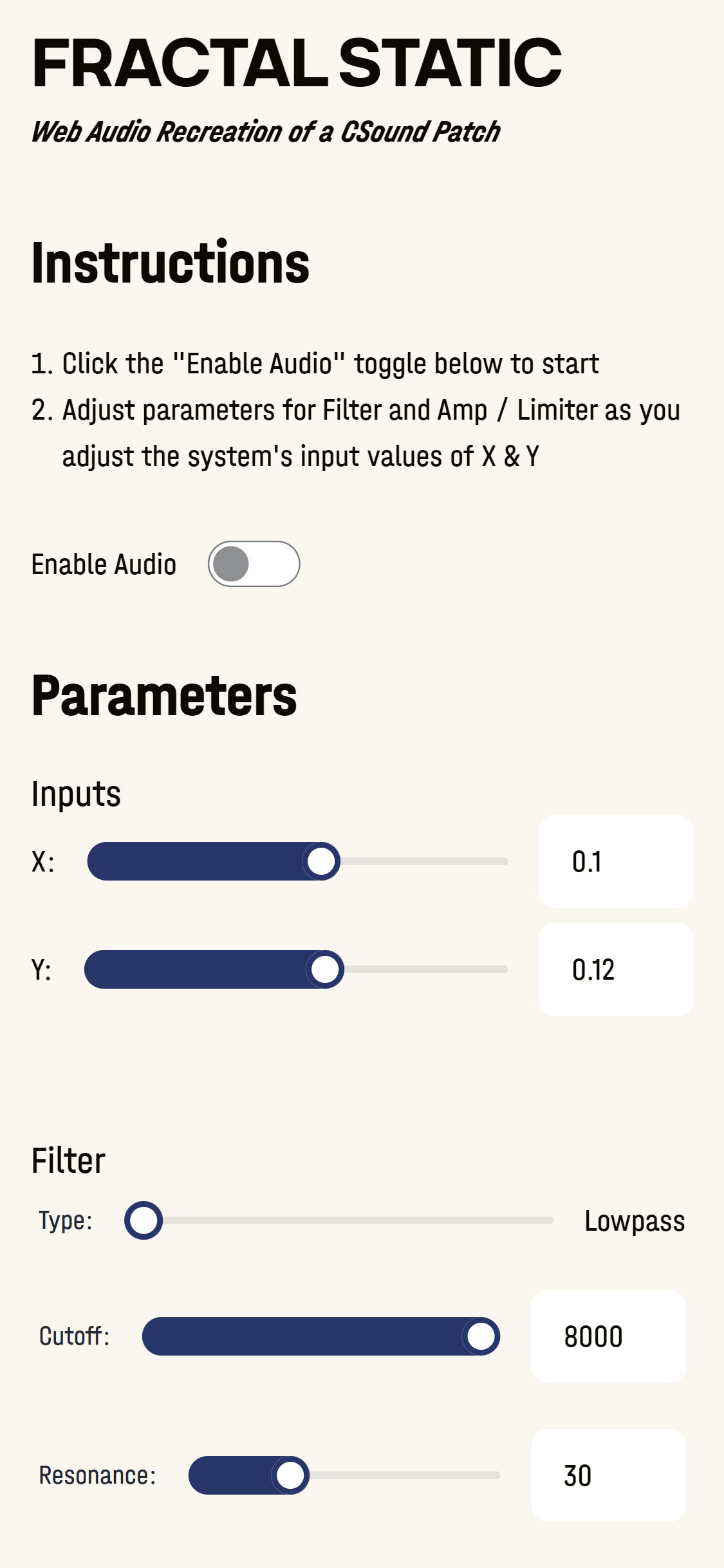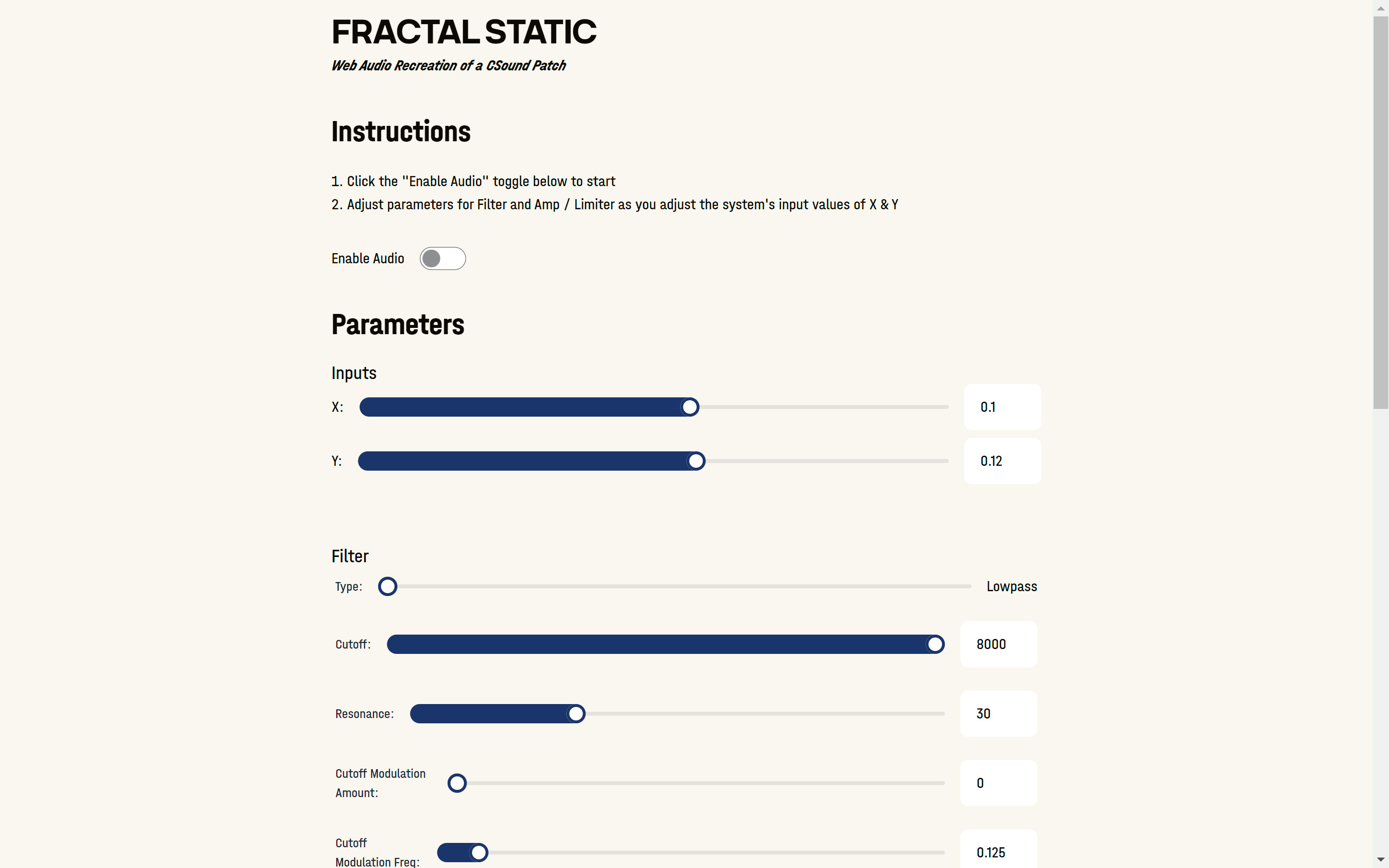 Web Audio application that recreates a legacy CSound patch using Svelte to host a custom RNBO WASM audio component